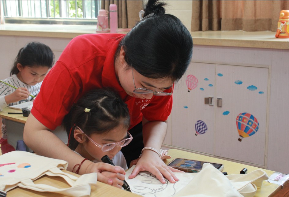 實踐小隊發揮本專長,為一年級和三年級的小朋友們上了一堂別樣的美術課程。團隊成員為小朋友們準備了手提袋、畫筆等。小朋友與成員們相互配合,通力合作,一起繪制了一幅幅生動的圖畫。這也拉近了實踐小隊與小朋友之間的距離,課堂上氣氛歡樂融洽、反響熱烈。