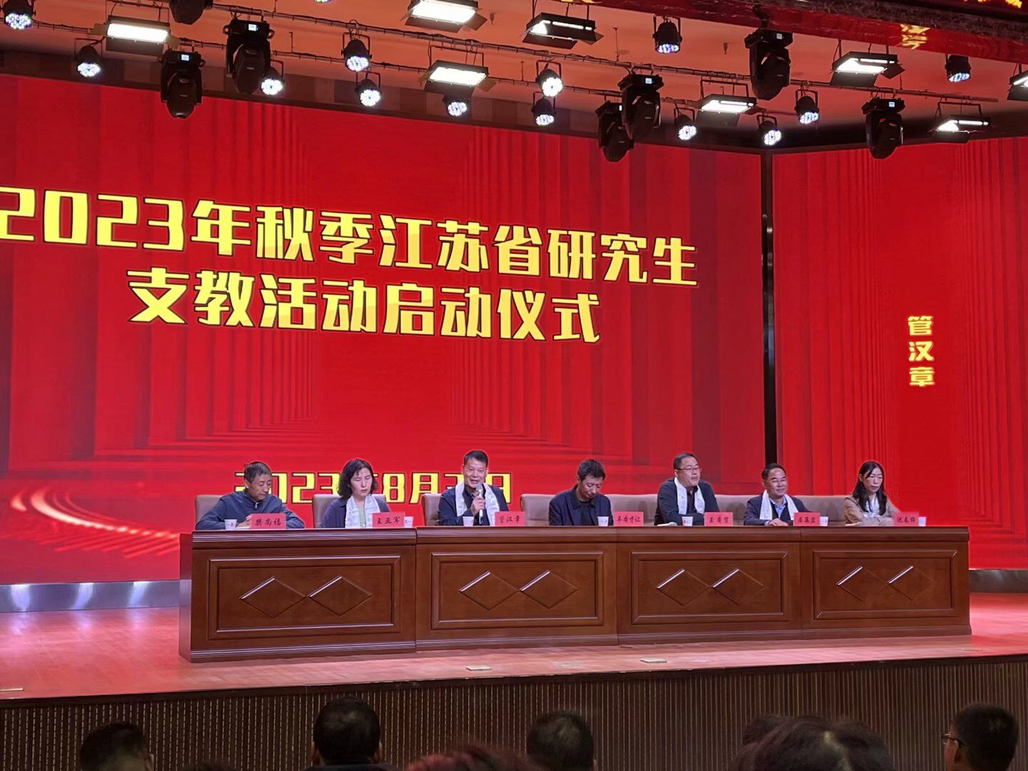 二、到達——譜寫新的支教華章8月30日當晚,支教團順利到達了目的地——青海省海南藏族自治州共和縣。他們踏上了這片神秘而壯麗的土地,正式從學長學姐們的手中接過了支教的接力棒,執筆寫下青海支教的新篇章。8月31日上午,江蘇省研究生支教活動啟動儀式在共和縣舉行。青海省海南藏族自治州教育局副局長羊本才讓在會上說:“希望同學們不忘初心、腳踏實地,發揚不怕苦不怕累的精神,在拼搏和奉獻中譜寫青海支教華章。”同學們也在啟動儀式上分享了自己的支教初衷,對即將開始的支教充滿了好奇與期待。