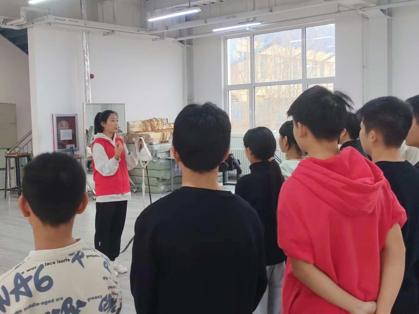 圖為社會實踐隊隊員在為同學(xué)們介紹護(hù)具的作用。中國青年網(wǎng)通訊員 牟雨陽 供圖