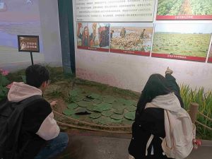 在了解完王家壩閘的相關知識后,實踐團循著習近平總書記的足跡,來到了阜南縣王家壩抗洪紀念館,參觀了展出的珍貴照片、文獻、實物、影像,了解到王家壩淮河治理、抗洪搶險、生產自救的紅色歷史與光輝歷程,也由此深刻體悟到蒙洼人民長期以來與洪水抗爭的艱辛和“舍小家為大家”的精神內涵。看著紀念館里觸動人心的畫面、傾聽著飽含真情的敘述,以及蒙洼人在大局面前,不畏艱險、不怕困難的自強不息、同舟共濟精神,成員們深受觸動。代代相傳,歷久彌新的“王家壩精神”仿佛浮動在每位成員的心底,令人動容。
