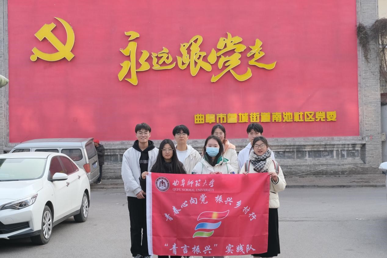 毛主席曾揮筆寫下這樣的詩句:“恰同學(xué)少年,風(fēng)華正茂,書生意氣,揮斥方遒,指點江山,飛揚文字,糞土當(dāng)年萬戶侯。”青年人是最具朝氣與希望的一代,也是即將要被委以重任的一代。作為一名在校大學(xué)生,我深知我們應(yīng)該要做些什么,來回報上一代人的教導(dǎo),來填補寒假假期的空閑。也正因為此,曲師大12個熱血學(xué)子一起,組成了“青言振興”實踐隊,深入曲阜市魯城街道南池社區(qū),探索鄉(xiāng)村振興背后的故事。