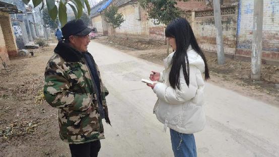 線上線下結合,了解民生民意活動開展之前,風展紅旗如畫實踐隊隊員從網上搜集資料信息,做好準備工作,了解社會大體意向。2024年1月27日上午,實踐隊隊員對北甲莊村社區的老人兒童家庭和學校進行實地訪談,在與他們的友好溝通表明來意后,通過觀察法和問答式行為,深入了解老人與兒童現在所面臨的問題和對社區的建議看法。在此過程中被采訪的老人與兒童家長積極配合,并對隊員們的行為表示認可。