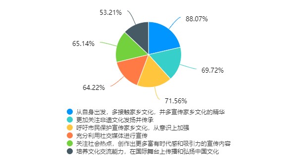 鄉韻文化先鋒隊山西分隊的成員們在上黨門和城隍廟進行了參觀,對這兩處古跡的歷史背景和建筑特色有了深入的了解和研究。同時,團隊還用問卷的形式了解了大學生對家鄉文化宣傳的看法和建議,共收集到有效問卷107份。從問卷中可以看出,超過85%的大學生支持家鄉文化的宣傳,說明大學生們對家鄉文化宣傳的問題很關心。在文化宣傳存在的問題上,活動形式化、日常文化活動較少是被認為最大的兩個問題。在如何加強文化宣傳方面,大部分人呼吁從自己做起,多接觸家鄉文化并宣傳出去,從意識上加強宣傳的意識。