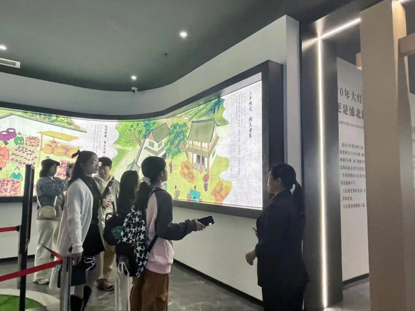 圖為工作人員引導(dǎo)團(tuán)隊(duì)成員觀看浦北陳皮文化動(dòng)態(tài)演示圖。