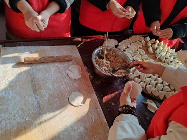 此時,社區(qū)廣場布置得熱鬧而溫馨。成員們們早早地準(zhǔn)備好餃子的材料,居民們陸續(xù)走進(jìn)廣場,看到這樣熱鬧的場景不禁笑逐顏開。大家都積極參與,主動加入到包餃子的隊伍中。一道道餃子從大家的手中誕生,擺滿了長長的餐桌。大家互相交流著自己包餃子的心得和故事,不知不覺間拉近了彼此之間的距離。