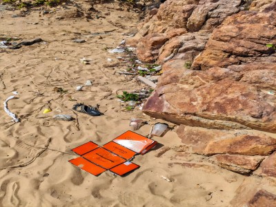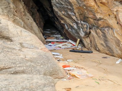 調研如火如荼的進行,團隊成員于1月27日上午深入探訪了富力灣濱海公路景區沙灘。該沙灘面積廣闊,地形復雜,礁石遍布,并伴有陡峭的山坡,其周邊被茂密的灌木和沙草所覆蓋。在該時段,沙灘游客數量較多,垃圾分布密度也相對較高,尤其在靠近內陸區域更為顯著。常見的垃圾包括飲料瓶、零食袋等游客遺留的廢棄物。特別值得注意的是,在兩處陡峭石縫中發現了大量垃圾殘留,垃圾種類繁多,包括煙頭、飲料瓶、紙巾、一次性餐具、零食袋、紙箱、廢舊衣物以及煙花爆竹等生活垃圾。經過細致分析,煙頭和飲料瓶占據了垃圾總量的約50%,成為沙灘垃圾的主要來源。此外,各類塑料制品,尤其是包裝袋和廢品,占據了約30%的比例。玻璃制品和金屬類垃圾占比約為10%。
