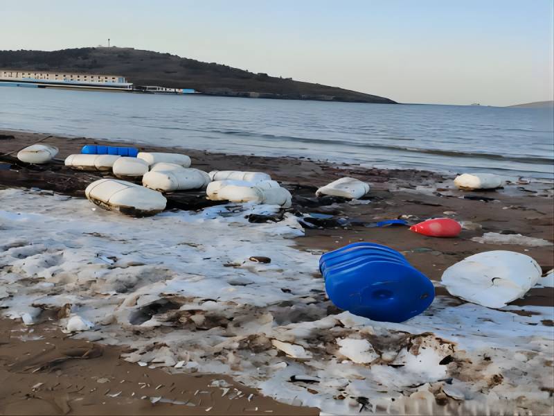 隨后,調研團成員轉至大連市大黑石海域進行實地調研。相較于星海廣場,該海域沙灘上的垃圾密度明顯增大,塑料制品占據主導地位,約占總量的90%。這些塑料垃圾包括塑料礦泉水瓶、塑料袋、塑料片以及浮漂等。此外,團隊成員還發現了一些較為陌生的垃圾類型,與海邊工作人員溝通得知,大黑石海域進行海參養殖,因此沙灘上的塑料片、大量塑料桶以及大量麻繩均是養殖過程中產生的廢棄物。具體垃圾統計如下: