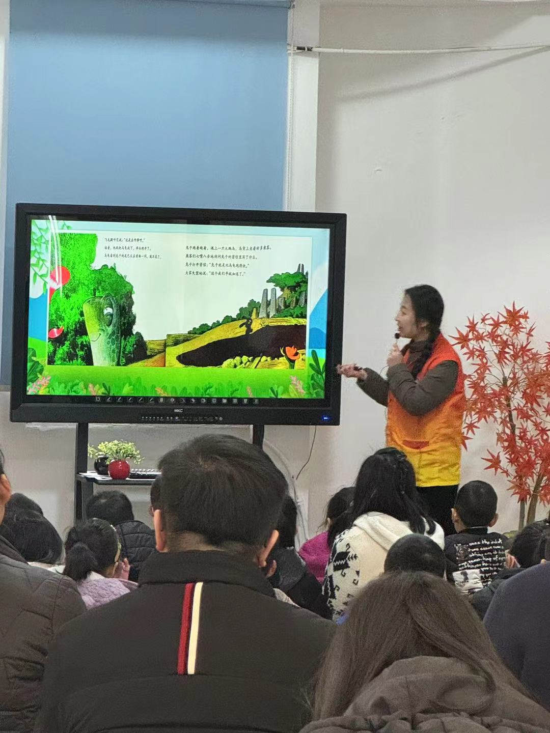 不僅如此,圖書館內還舉辦了【迎除夕,慶新年】繪本分享會“來年可待,一行一步一花新”。志愿者們借繪本《烏龜就是比兔子跑得快》中關于謠言和真相的故事提醒和教育孩子。這樣的活動趣味與學習并行,志愿者繪聲繪色的朗讀讓幼童們更好的接受故事內容和寓意,為這些兒童的健康成長提供有力支持。