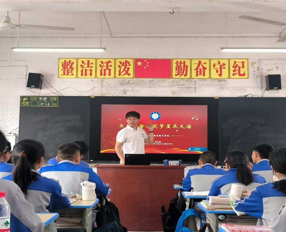 離開貴陽三中后,5月10日,筑夢藍天實踐隊來到岑鞏縣,航空航天學院李輝教授面向岑鞏第一中學學子展開科普講座,以《夢開始的地方》為題,生動地講述了中國航空航天事業的光輝歷程,激發了他們投身空天報國的理想信念。