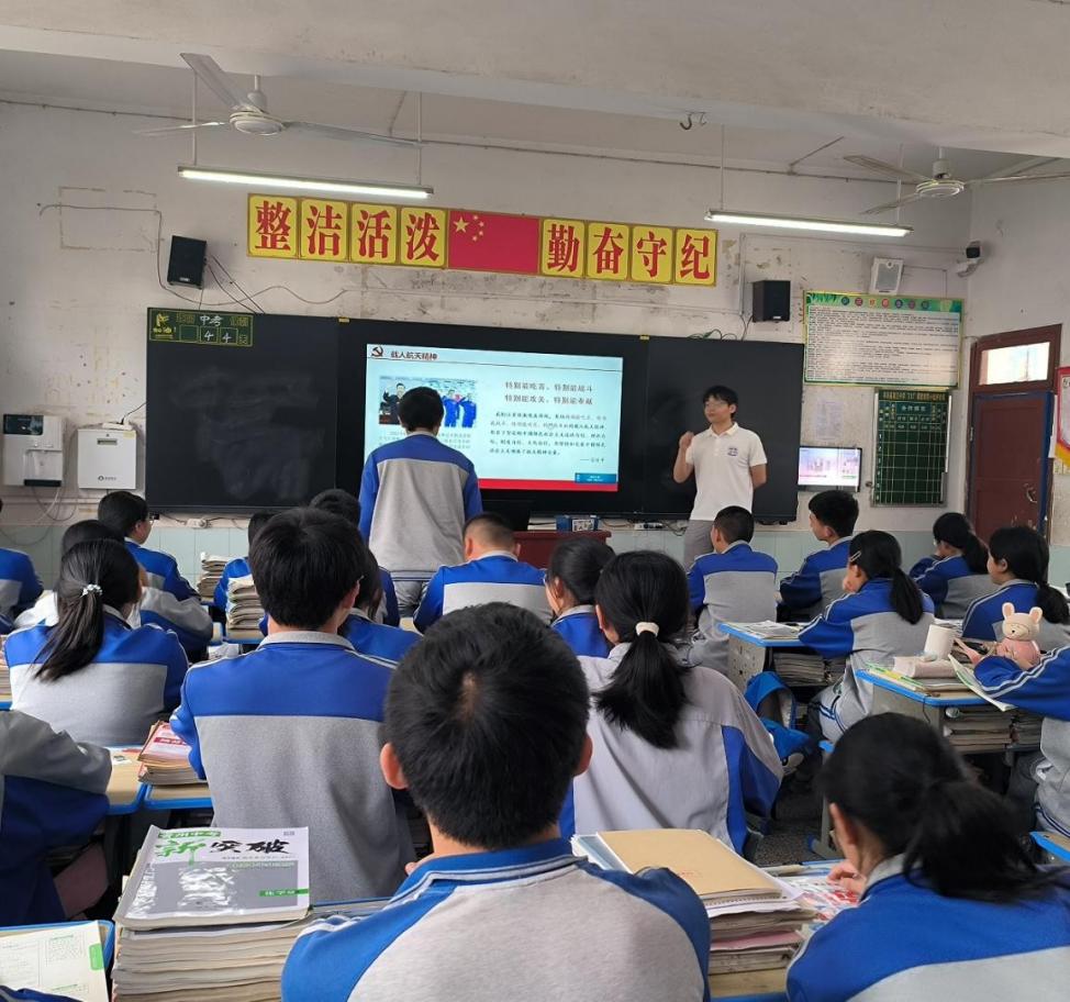 圖9 康雨琳在岑鞏三中9(18)班進行宣講