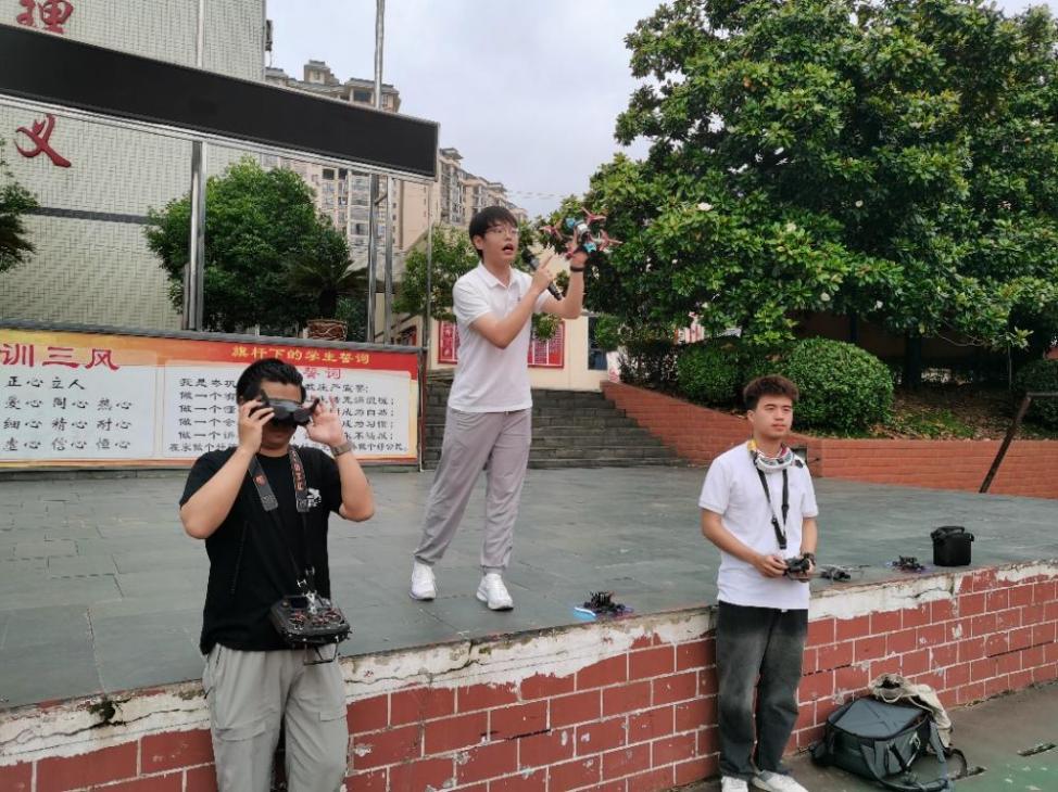 同時,航空航天學院筑夢藍天實踐隊來到了學院定點幫扶的岑鞏三中,為岑鞏三中的同學進行了精彩的航模表演,贏得了同學們的陣陣掌聲,同時也給三中學子心中埋下了一顆科技報國,空天強國的種子。