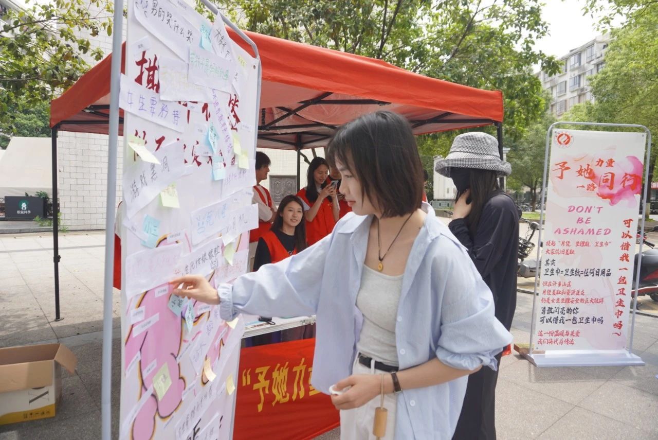 活動伊始,經過心理專業知識培訓的志愿者們熱情地向參加本次活動的愛心人士介紹活動意義,普及山區衛生巾緊缺的實際情況,并引導大家消除月經羞恥的錯誤觀念。活動現場各學院師生紛紛加入衛生巾捐贈活動,參互募捐的龐然文同學說:“這個活動非常有意義,不僅引導大家正視“月經”這一正常的生理現象,推動更多人關注女性健康,同時還為山區女孩健康成長賦能。”