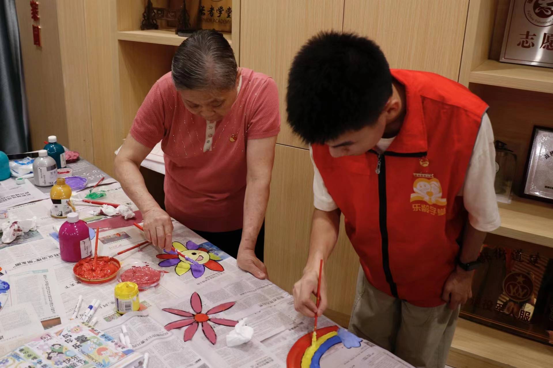活動中,兩岸實踐隊員們熱情洋溢,與建華社區的小朋友們和老年人們親密互動。大家圍坐一堂,共同制作樹葉風鈴和pvc條幅畫,現場氣氛溫馨而熱烈。孩子們純真的笑容和老年人們慈祥的目光交織在一起,形成了一幅青老共伴的和諧畫面。通過這一過程,不僅增強了老年人與兒童之間的情感聯系,也讓他們在相互陪伴中找到了生活的樂趣和價值。