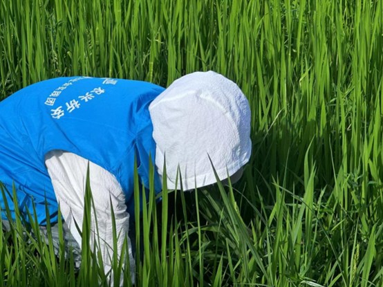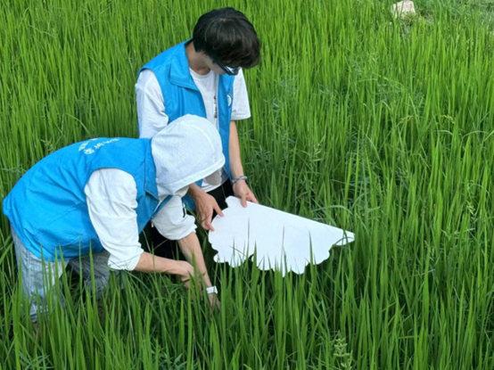 下午,所有團隊成員前往水稻田開展實地調研。在水稻田負責人林總的帶領下,成員們親自下田觀察水稻形態,體驗水稻種植,模擬傳統水稻病蟲害監測的方法。過程中,林總向我們詳細介紹了水稻病蟲害監測和防治的方法以及心得。此后,成員們向林總介紹了AR智能巡檢眼鏡的功能及使用方法。這個由我們學院設計開發的智能設備可以大幅度提升病蟲害監測的準確性,只需說一句“拍照”,AR眼鏡就能自動拍攝病蟲害圖像并將其傳送至移動端進行處理分析,生成分析報告并反饋給農戶。林總表示對AR眼鏡非常有興趣,隨后成員們與林總一起使用AR眼鏡對水稻進行病蟲害監測。