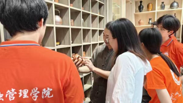 實踐團成員走進了風景如畫的長濂村,參觀了當地的根雕博物館和黑陶工作室。在這里,他們不僅欣賞精湛的手工藝品,還與手工藝人深入交流,探索非物質文化遺產保護與發展。通過這些交流,實踐團希望能夠激發非遺文化的創新活力,為村落帶來新的發展機遇。