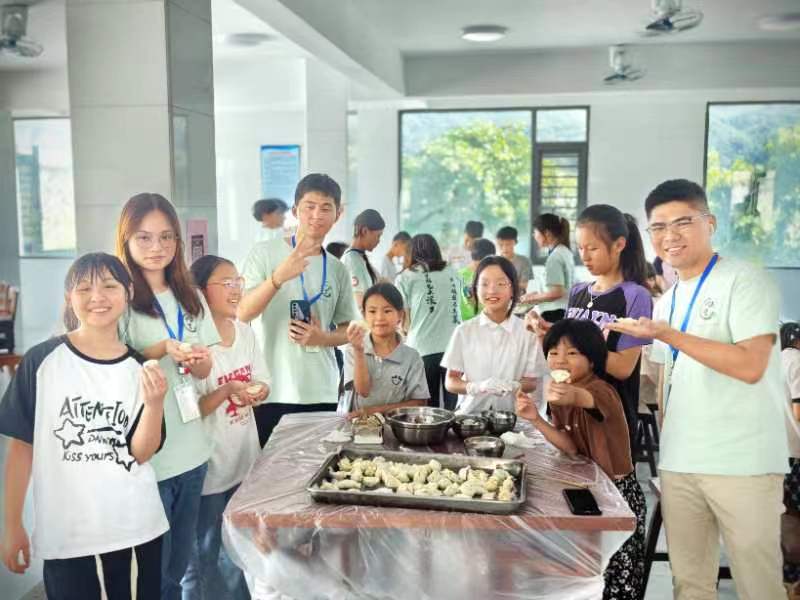 在吸收了豐富的理論知識后,實踐隊引導孩子們參與到“手工包餃子”的實踐活動中。隊員們準備了餃子皮、新鮮蔬菜、精選肉餡等簡單食材,通過生動的講解,不僅展示了食物從原料到美味佳肴的奇妙轉變,還寓教于樂地介紹了中國飲食文化中餃子的由來與寓意。動手包餃子時,孩子們紛紛展示出自己的才藝,發揮無限想象,一個個形態各異的餃子漸漸出現在盤子里。作品完成后,孩子們制作的餃子被放入鍋中烹煮,晚餐時間,大家品嘗著自己親手制作的美食,每一口都飽含喜悅和成就感。整個活動結束后,孩子們不僅學會了包餃子這一傳統技能,更體會到了勞動帶來的快樂與美食的來之不易。