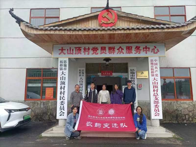 湖北民族大學農韻變遷隊在恩施板橋鎮大山頂村村委會前的合照 通訊員:余蕊汐
