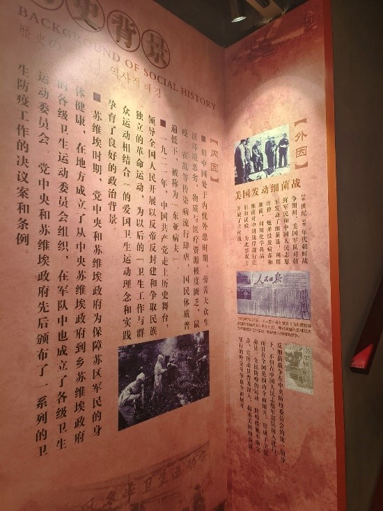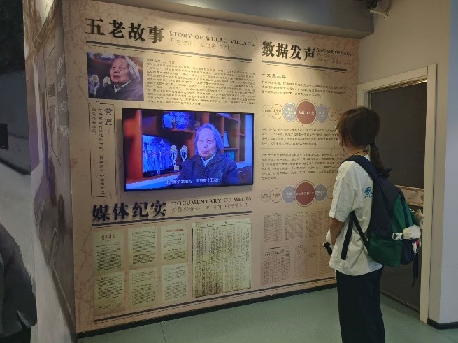 在了解了愛國衛生運動的歷史背景后,實踐隊員參觀了衛生運動的行動措施及革命方針,從“序言、艱苦歷程、往事回憶區、高歌猛進、展望未來”五個展區,憶往昔、展未來,聽五老故事,悟五老精神,深入感受五老村愛國衛生運動的成果和全國影響力。