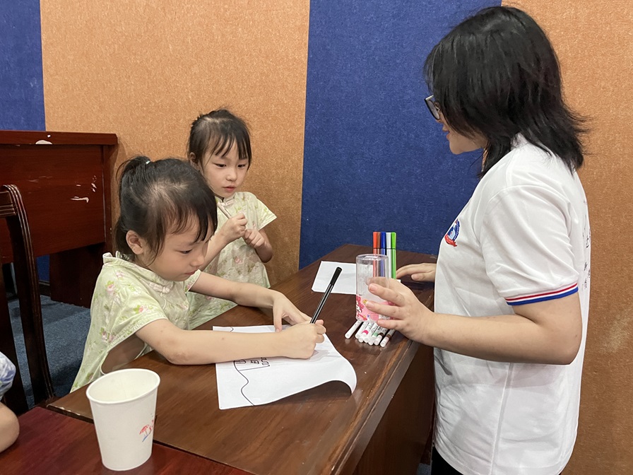 活動當天下午,主講人何佳穎以嫦娥奔月的故事為引,向小朋友們介紹了中國的首顆人造衛星“嫦娥”,隨后鼓勵小朋友們對未來的科技生活展開大膽想象并用簡筆畫將其展示出來。接著,隊員們和小朋友共同協作,以報紙為原料開展創意時裝秀,小朋友們紛紛設計出各式巧妙的創意時裝。最后,所有人員齊唱《你笑起來真好看》,在歌聲中,本次活動圓滿結束。