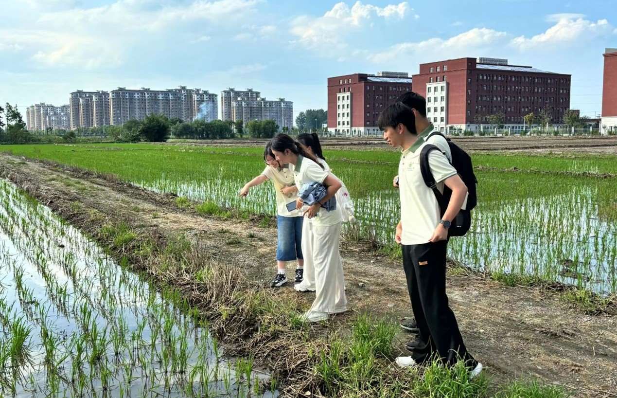 圖為實踐成員實地走訪水稻耕地。 通訊員 俞姝含 攝