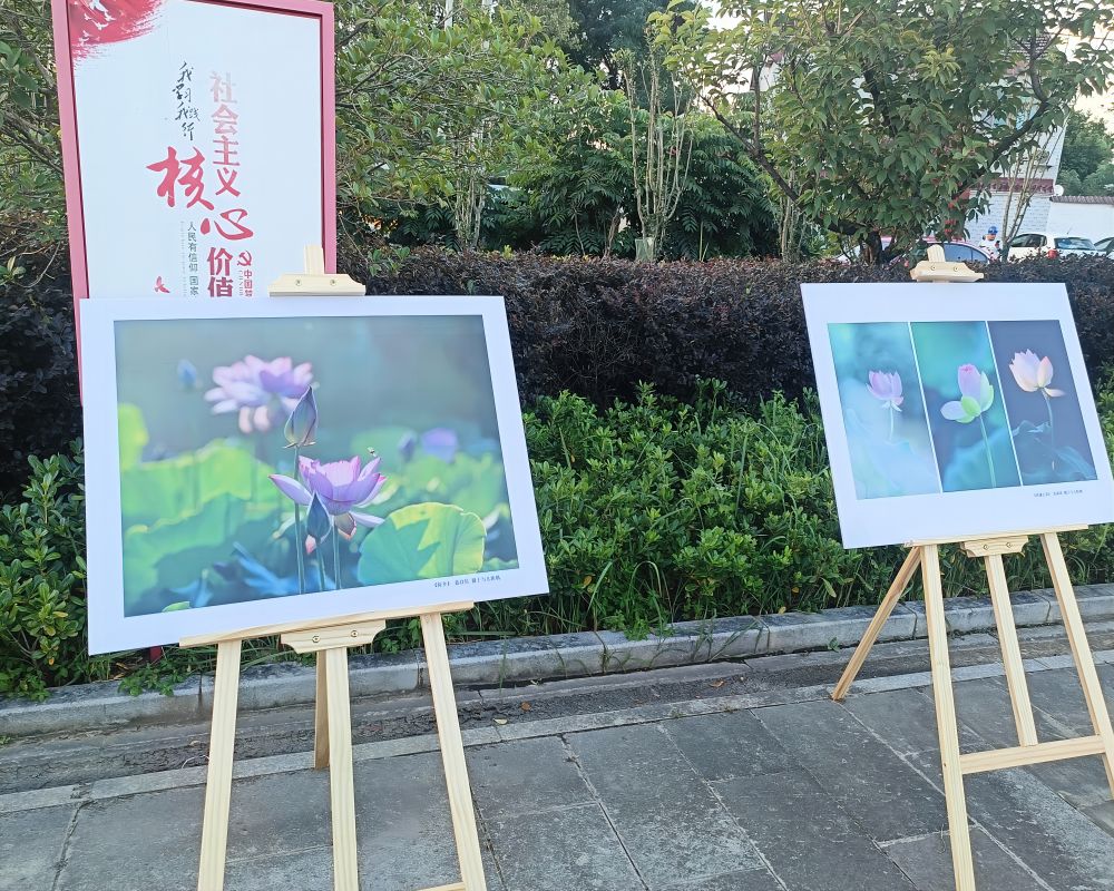 隨后,團(tuán)隊(duì)成員來(lái)到了荷花攝影展區(qū)。這里匯聚了一系列精美的荷花攝影作品,每一幅作品都傳遞了霍山縣深厚的文化底蘊(yùn)和鄉(xiāng)村的獨(dú)特韻味,更展現(xiàn)了當(dāng)?shù)匚幕衽d的風(fēng)貌。通過(guò)攝影展,團(tuán)隊(duì)成員對(duì)霍山縣的文化振興有了更加直觀和深入的了解。