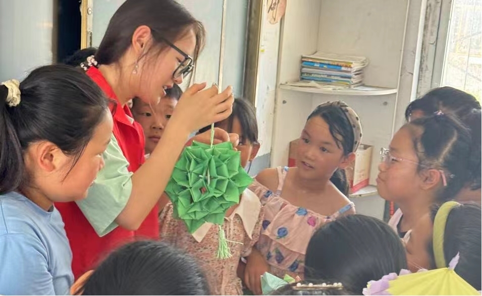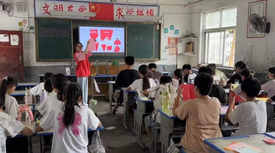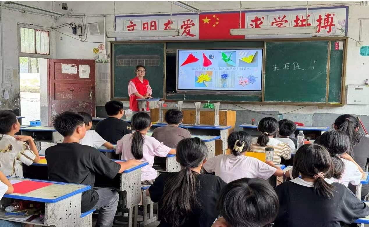 黨的十八大以來,習近平總書記在不同場合多次談到文化遺產的保護與傳承,中華文化是我們提高國家文化軟實力最深厚的源泉,是我們提高國家文化軟實力的重要途徑。要使中華民族最基本的文化基因與當代文化相適應、與現代社會相協調,以人們喜聞樂見、具有廣泛參與性的方式推廣開來,把跨越時空、超越國度、富有永恒魅力、具有當代價值的文化精神弘揚起來,加強文化遺產保護傳承 ,弘揚中華優秀傳統文化。 2024年7月5號,河南工業大學“青葵·逐夢”團隊在駐馬店市新蔡縣余店鎮中心小學開展大學生支教實踐活動,進行“紙間折疊傳統韻,藝術傳承文化花”為主題的折紙課。