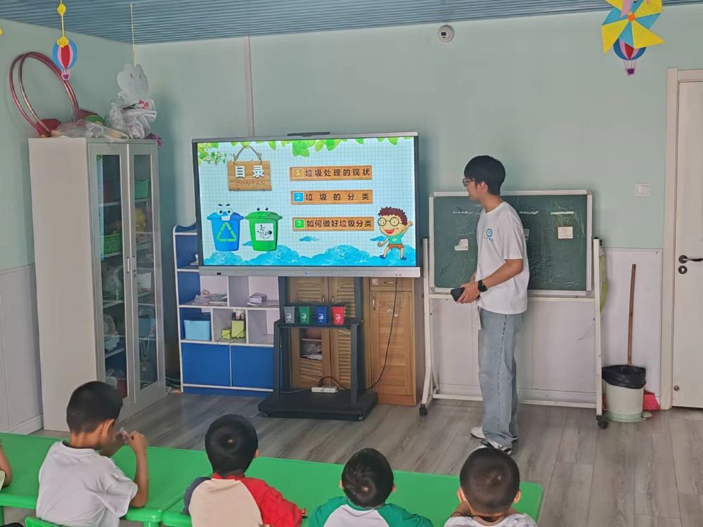 7月初,實踐隊員又走進淮安市淮陰區康馨語言康復中心,為特殊兒童群體帶來一場特別的垃圾分類宣講。團隊小講師考慮到孩子們的特殊需求,以垃圾分類相關圖片和視頻展示為主,運用通俗化的講解語言,并以簡單手語為輔助,憑借高度的親和力打動了在場的所有小朋友及家長。垃圾分類的意識在孩子們和家長的心中生根發芽,未來也會長成一棵參天大樹,為地球的垃圾分類事業貢獻重要力量。