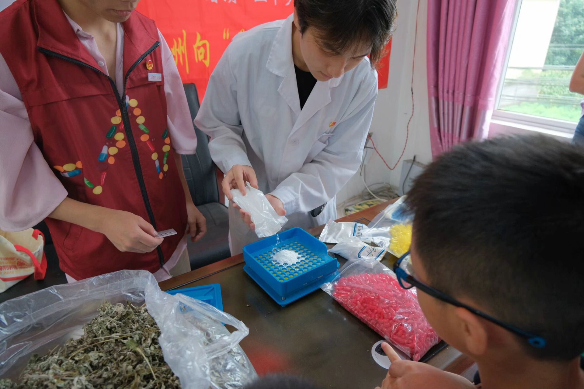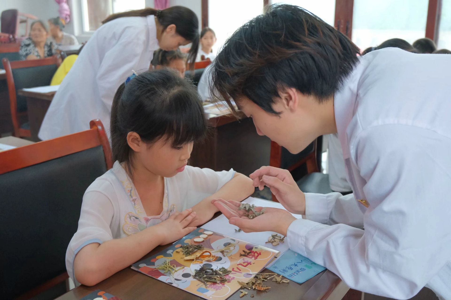 在推普講堂活動中,服務隊成員以嚴謹且富有吸引力的方式,向兒童們傳遞了中藥材的專業知識,并對發音進行精準指導和糾正,以促進其口語表達能力的有效提升。此外,他們還巧妙地結合中藥知識,引導兒童們朗讀相關的詩詞并進行了詞語接龍,他們還引入了膠囊制作這一活動,旨在深化兒童對中藥獨特魅力和價值的認識。在課堂的互動環節中,兒童們展現出極高的參與熱情,紛紛踴躍發言,用他們純真的聲音表達了對普通話和中藥文化的深厚情感。服務隊成員耐心傾聽每一位兒童的發言,并給予及時的鼓勵和指導,確保兒童在輕松愉悅的學習環境中獲得成長。
