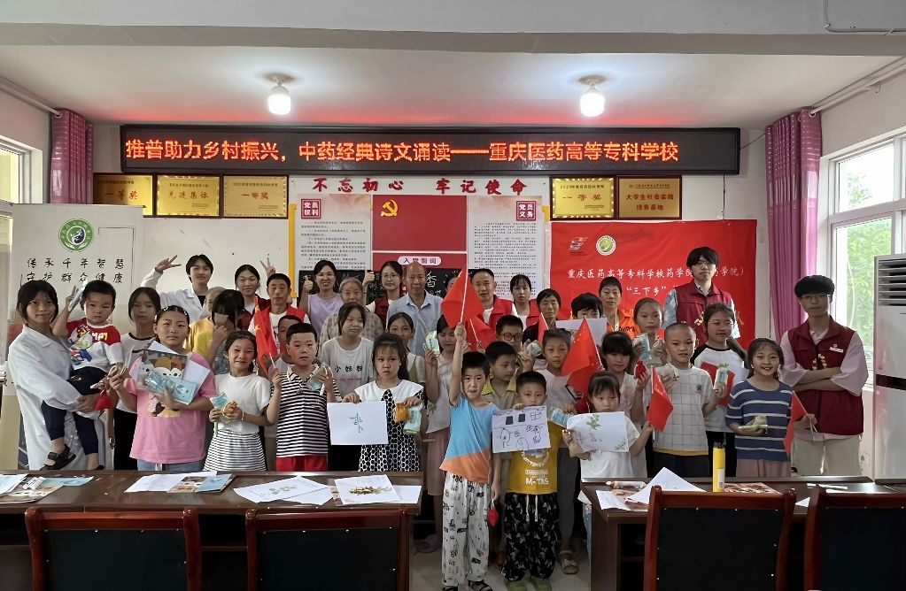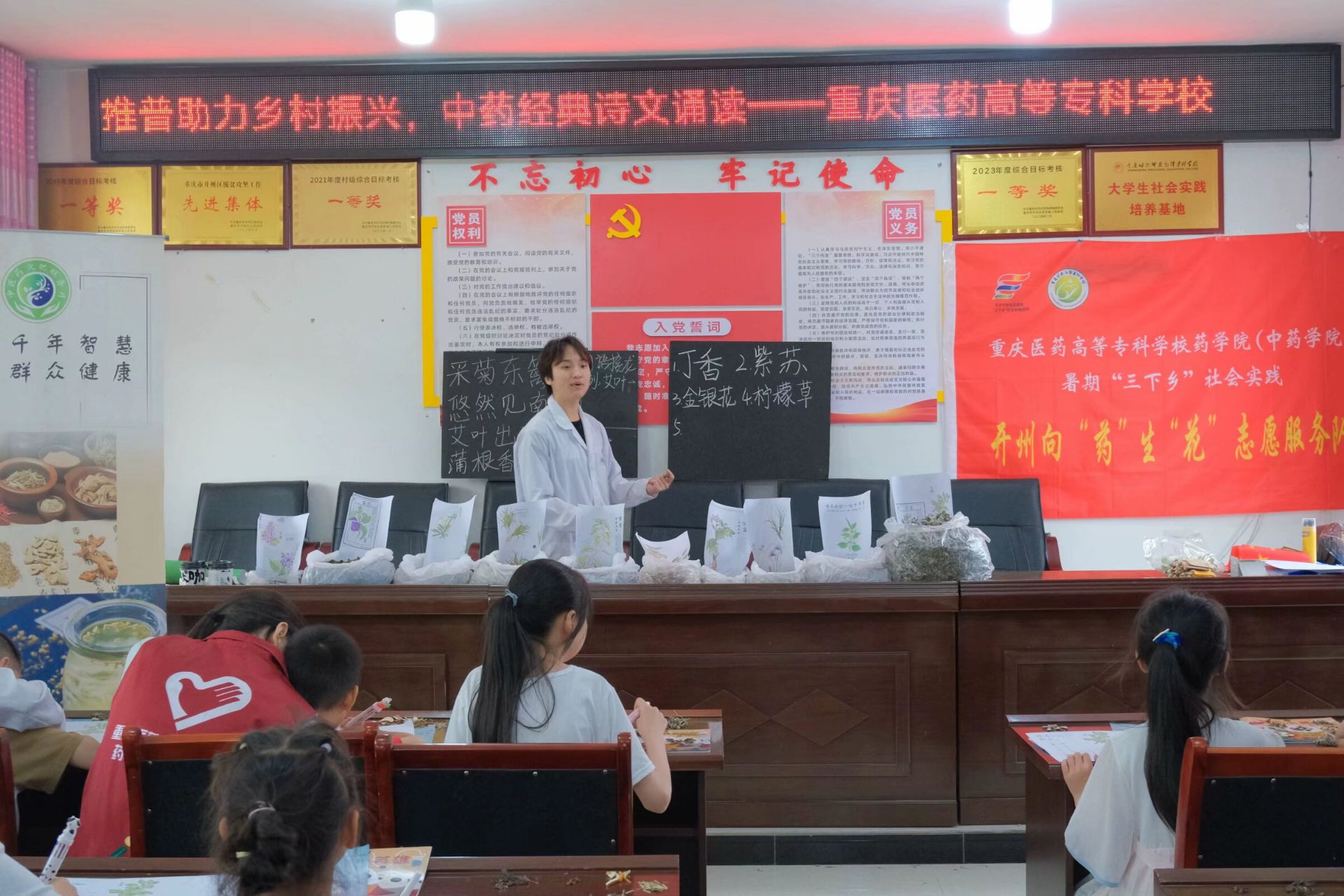為深入學習貫徹習近平總書記關于教育的重要概述和關于國家通用語言文字教育作出的一系列重要批示,響應“推普助力鄉村振興”的號召,進一步幫助農村地區提升語言溝通能力,提升鄉村兒童的普通話使用能力,激發孩子們濃厚興趣。為此2024年7月8日,在重慶醫藥高等專科學校和藥學院(中藥學院)黨總支的統籌、支持下開州向“藥”生“花”志愿服務隊(以下簡稱服務隊)赴鐵橋鎮金沙村開設一系列推普講堂、開展“推普助力鄉村振興”暑期社會實踐專項活動。