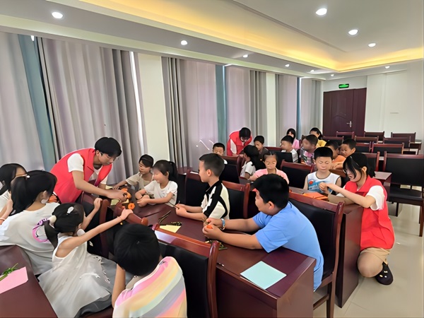 活動(dòng)當(dāng)天,志愿者們來到了譚下村村委會(huì),與孩子們進(jìn)行了親切的交流。在簡單的自我介紹之后,志愿者們首先向孩子們介紹了手工藝術(shù)的基本概念,以及在生活中的實(shí)際應(yīng)用。隨后,他們通過現(xiàn)場(chǎng)演示和分步指導(dǎo)的方式,教授了孩子們?nèi)绾沃谱骱喴椎募埶囎髌贰T谑止ふn上,孩子們表現(xiàn)出了極大的興趣和熱情。他們認(rèn)真傾聽志愿者們的知識(shí)講解,仔細(xì)觀察著每一個(gè)手工制作步驟,不時(shí)提出自己的疑問和想法。志愿者們也耐心解答著孩子們的問題,鼓勵(lì)他們發(fā)揮自己的想象力和創(chuàng)造力,將手中的材料變成一件件精美的工藝品。經(jīng)過一個(gè)半小時(shí)的努力,孩子們完成了自己的手工作品。有的制作了可愛的小菠蘿,有的制作了小巧可愛的指環(huán),還有的制作了向日葵戒指。這些作品不僅充分展現(xiàn)出孩子們的才華和創(chuàng)造力,也凝聚了他們與志愿者們之間的深厚友誼。