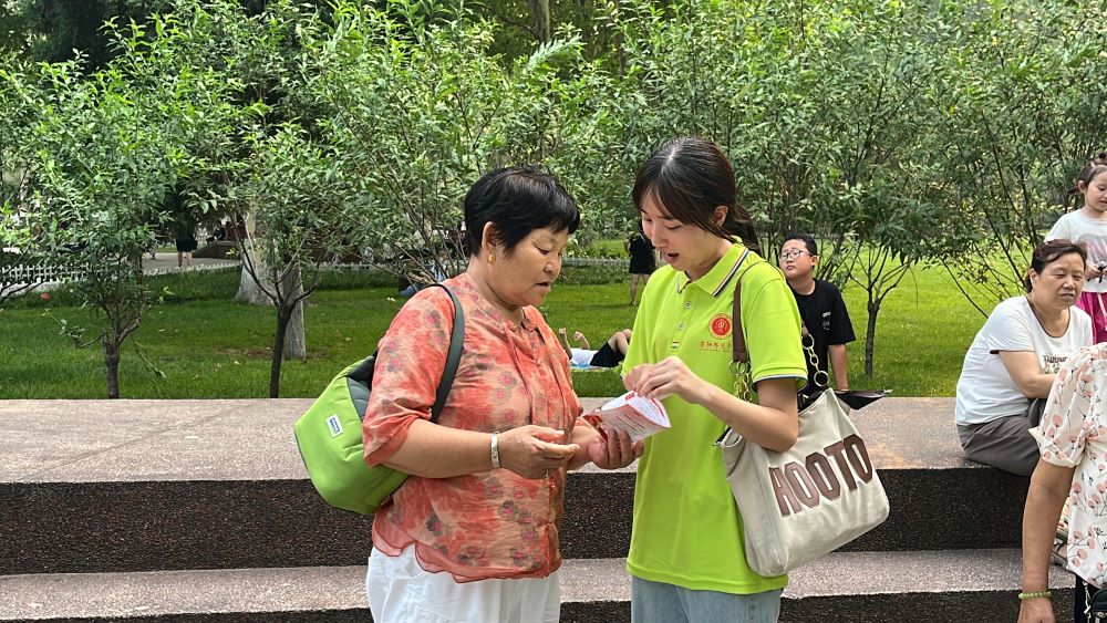 圖為張曉月同學(xué)在為市民普及法律知識(shí)。通訊員 左子君 供圖