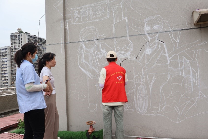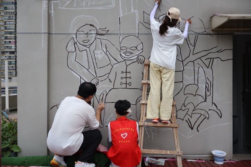 近日,武漢文理學院教育學院文理七彩少年教育服務隊“多彩墻繪,文化鑄魂”活動在武漢市民意街道空中花園如火如荼地展開。本次墻繪活動旨在增強社區文化氛圍、發揚奉獻精神、讓社區居民感受到青年志愿者的創意與活力。