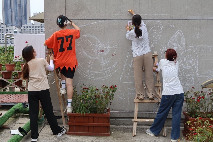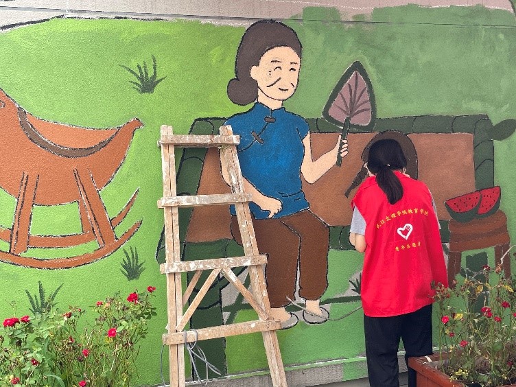 隊員們不畏酷暑,用畫筆描繪美麗社區的嶄新風貌,發揚不怕苦不怕累的精神,認真勾勒每一個細節、反復充實每一面墻繪,將畫筆傾注巧思和情感,讓單調的墻體換上色彩繽紛、妙趣橫生的新衣。同時培養了隊員們的奉獻精神,鍛煉了實踐能力,彰顯了文理學子、教育青年之風貌。