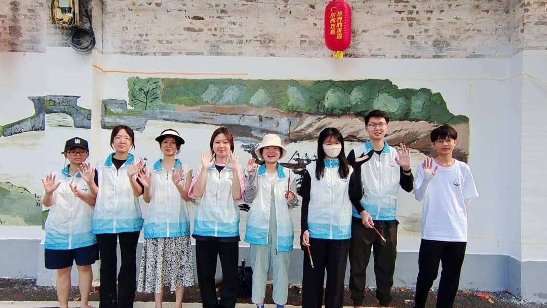 嶺南青年實踐團隊員在完成的墻繪前合照