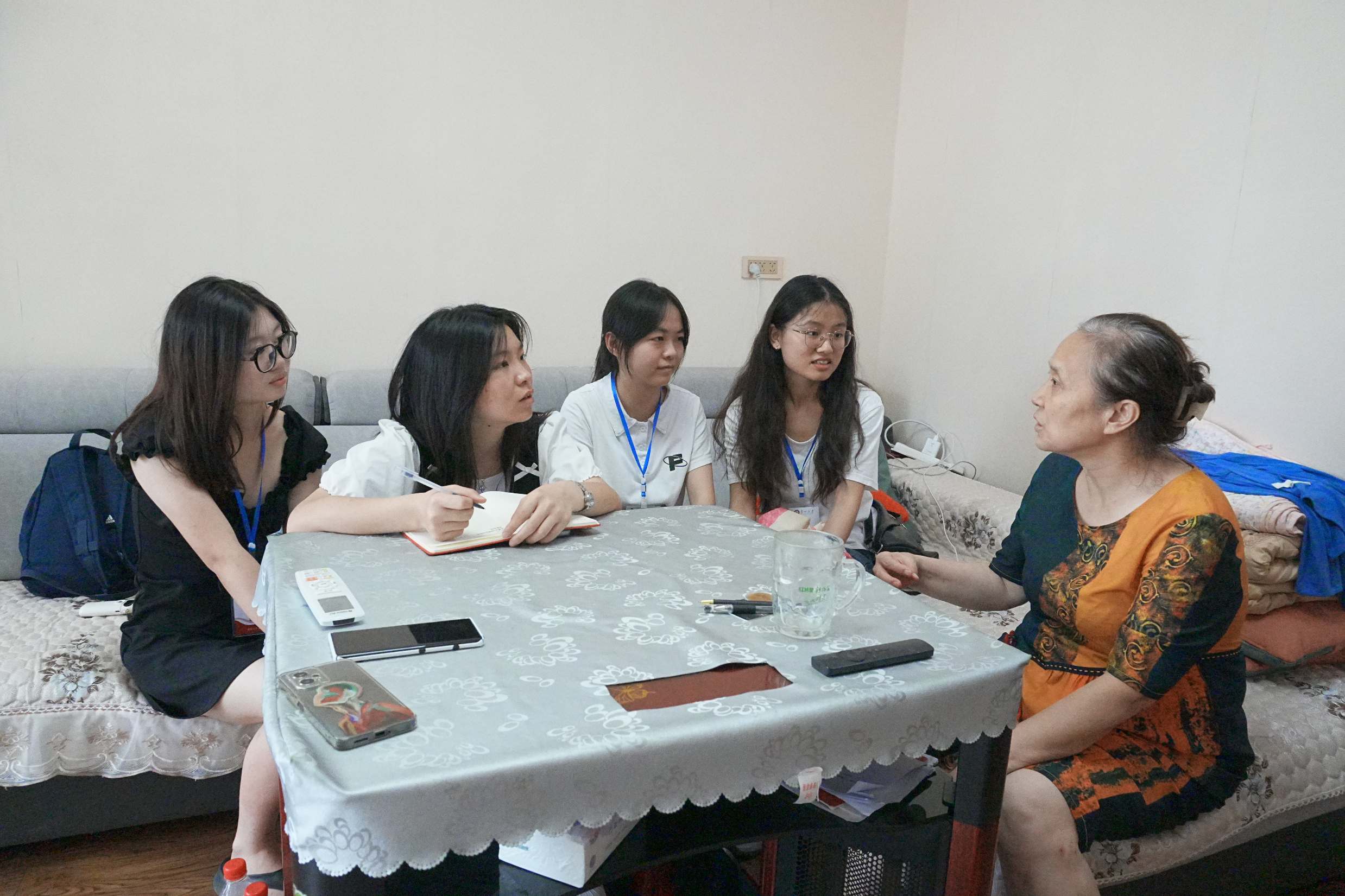 (圖為實踐隊隊員采訪秦治鳳老師。多彩大學生通訊員 印坤 攝)