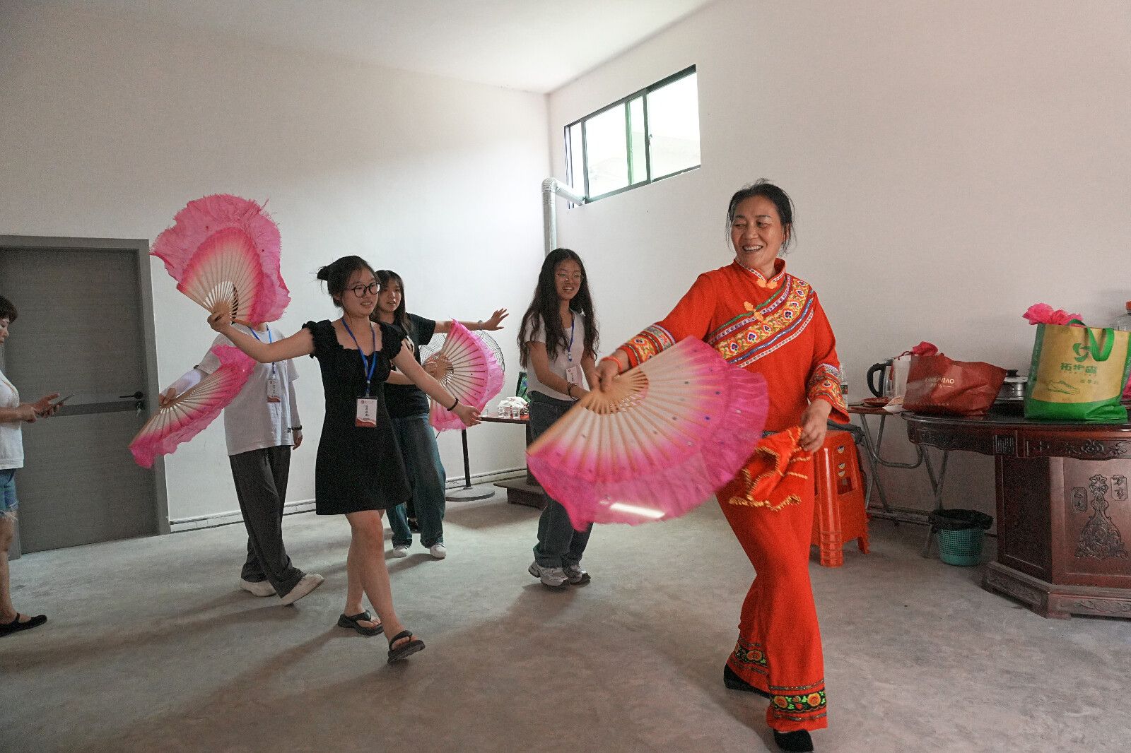 為了能夠更加深入、全面且細膩地體驗思南花燈文化那獨特而深厚的底蘊,實踐隊隊員們積極主動、熱情高漲地在許朝芬老師耐心細致的指導下,開始學習花燈的簡單動作。隊員們全神貫注、心無旁騖,用心領悟每一個動作的要領和精髓,通過親身實踐,深刻而真切地感受思南花燈所蘊含的迷人藝術魅力和豐富文化內涵。調研活動圓滿結束后,隊員們在許家壩政府食堂一同共進午餐。午餐過后,實踐隊對許家壩鎮長進行了深入的采訪,就許家壩花燈文化的發展規劃、推廣措施以及在育人方面的展望等內容進行了全面而深入的交流和探討。