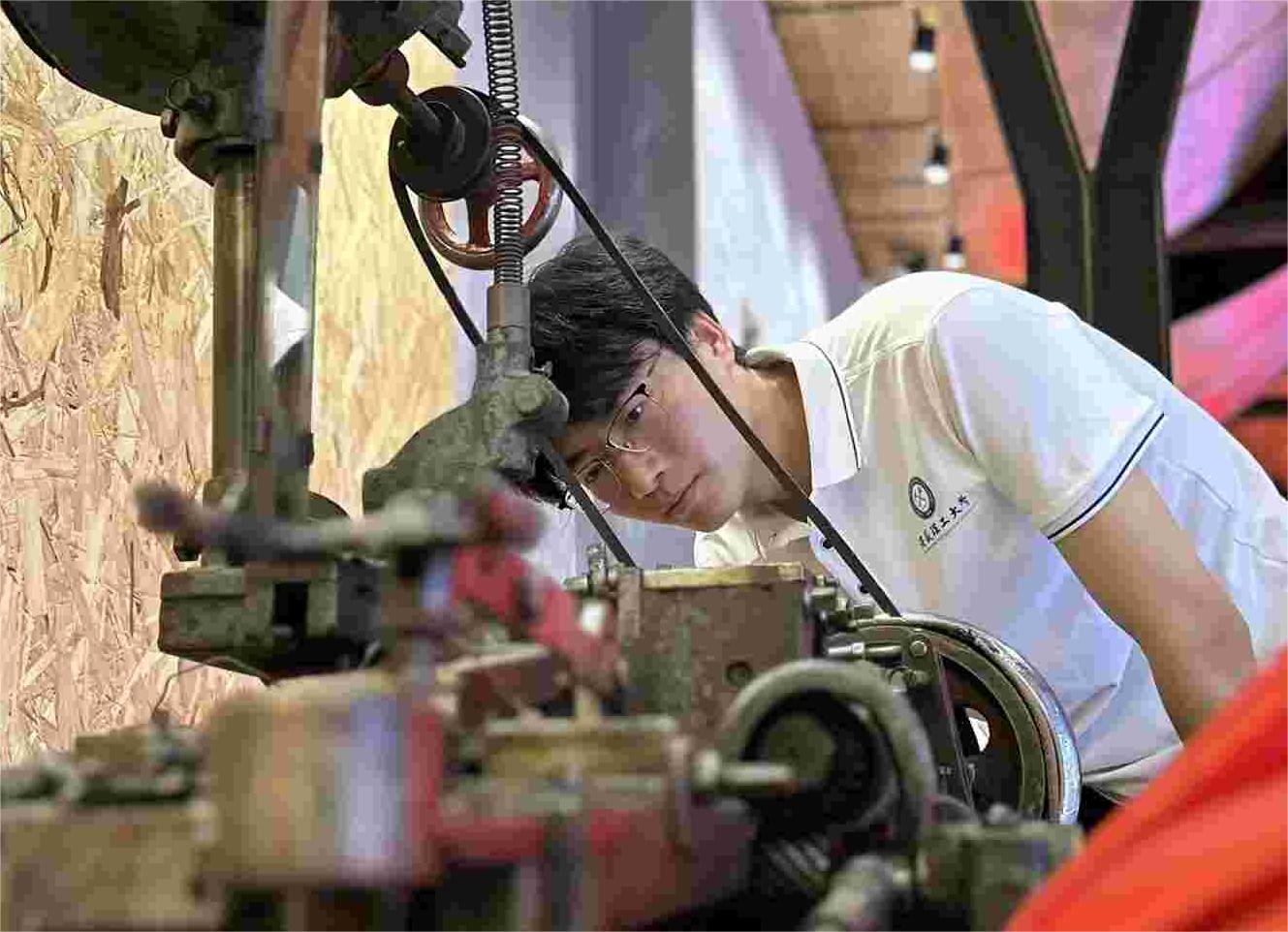 圖2 團(tuán)隊(duì)成員認(rèn)真觀察展品 攝:祁翔 經(jīng)過(guò)一上午的調(diào)研,同學(xué)們有些許疲憊,但這并沒(méi)有讓同學(xué)們停下探訪雅韻的路程。同學(xué)們以飽滿的熱情來(lái)到了新杭鎮(zhèn)皖南徽磚博物館,踏上了一場(chǎng)穿越時(shí)空的文化之旅。這里不僅是一座收藏著無(wú)數(shù)精美徽磚的藝術(shù)殿堂,更是承載著千年傳統(tǒng)文化精髓的藝術(shù)家園。博物館通過(guò)現(xiàn)代科技的手段,讓同學(xué)們了解了徽磚燒制的過(guò)程,傾聽(tīng)每一塊磚所帶來(lái)的故事,與歷史對(duì)望,與古人交流。在博物館內(nèi),同學(xué)們欣賞獨(dú)具美感的磚雕作品,了解皖南磚雕風(fēng)格的多樣性,親身體驗(yàn)磚雕的過(guò)程。同學(xué)們沉醉其中,感受那份歷久彌新的藝術(shù)魅力與文化韻味。 其中,皖南徽磚博物館創(chuàng)始人黃章程先生與同學(xué)們深入交流了徽磚的傳承、保護(hù)和發(fā)展。他表示,會(huì)將初心貫徹到底,在磚雕的路上不斷前行,同時(shí)也希望能夠有更多的年輕人投身到徽磚保護(hù)中來(lái)。同學(xué)們?yōu)榛沾u的制作過(guò)程感到震撼,同時(shí)也為傳承人的持之以恒所感動(dòng)。走進(jìn)徽磚,同學(xué)們不僅感受到了東方美學(xué)的獨(dú)特魅力,更堅(jiān)定了守護(hù)這份瑰寶的決心和毅力。