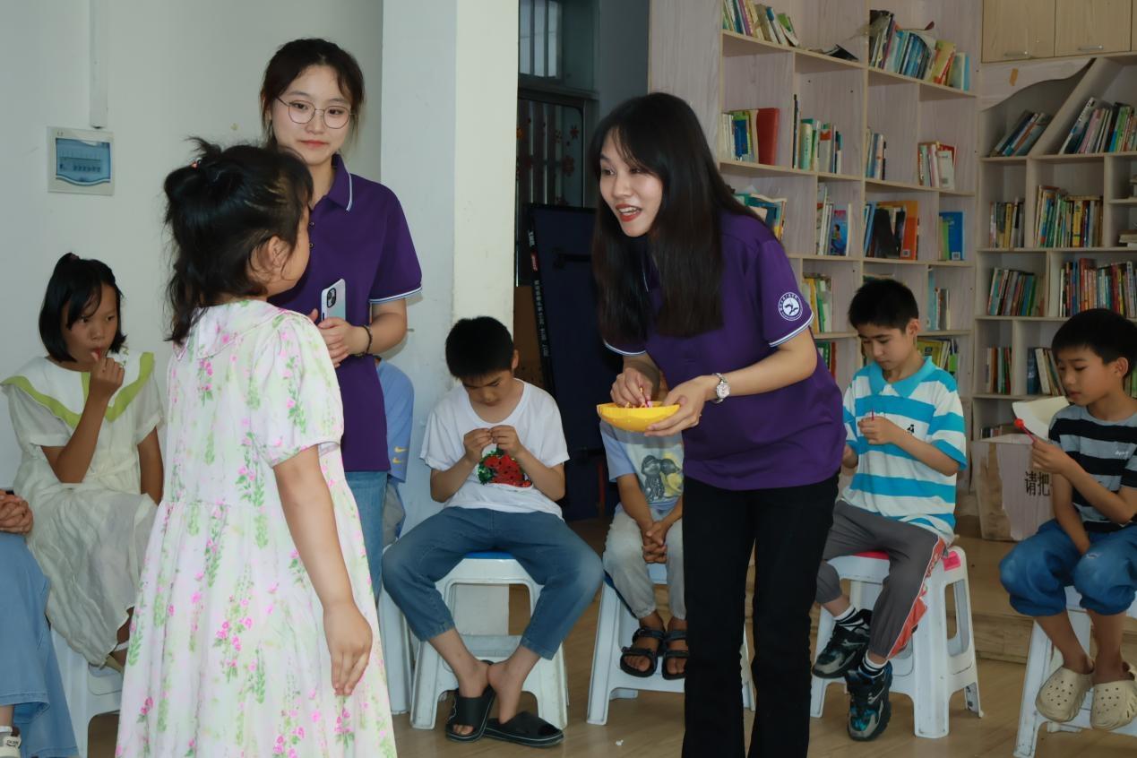 | (圖為7月7日“支教踐初心 微光聚希望”社會(huì)實(shí)踐團(tuán)隊(duì)成員羅露露與小朋友互動(dòng) 陳佳睿供圖) |