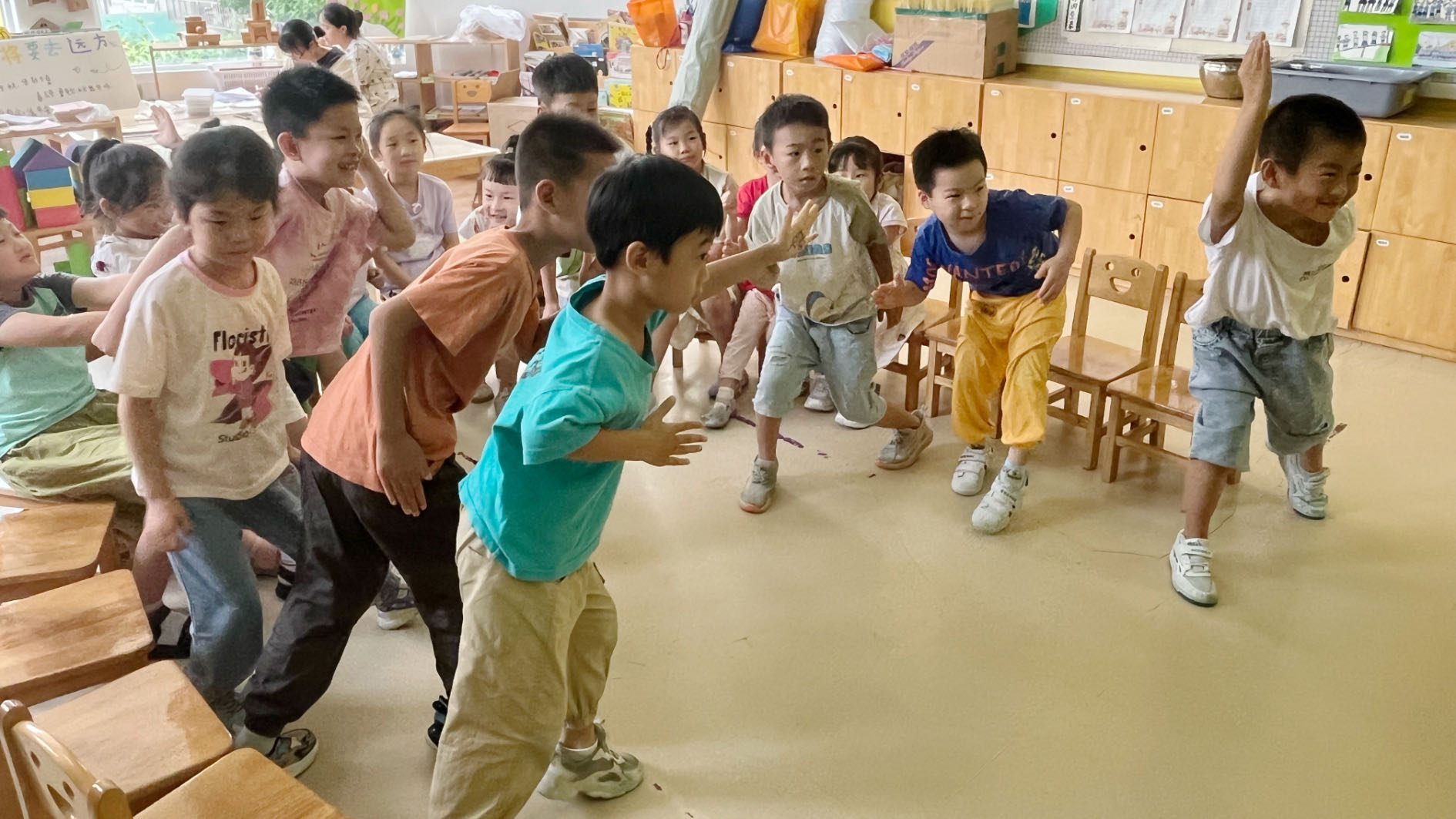 圖四為幼兒集體模仿踮腳走路狀態(tài)。 中國青年網(wǎng)通訊員 王孝孝 供圖