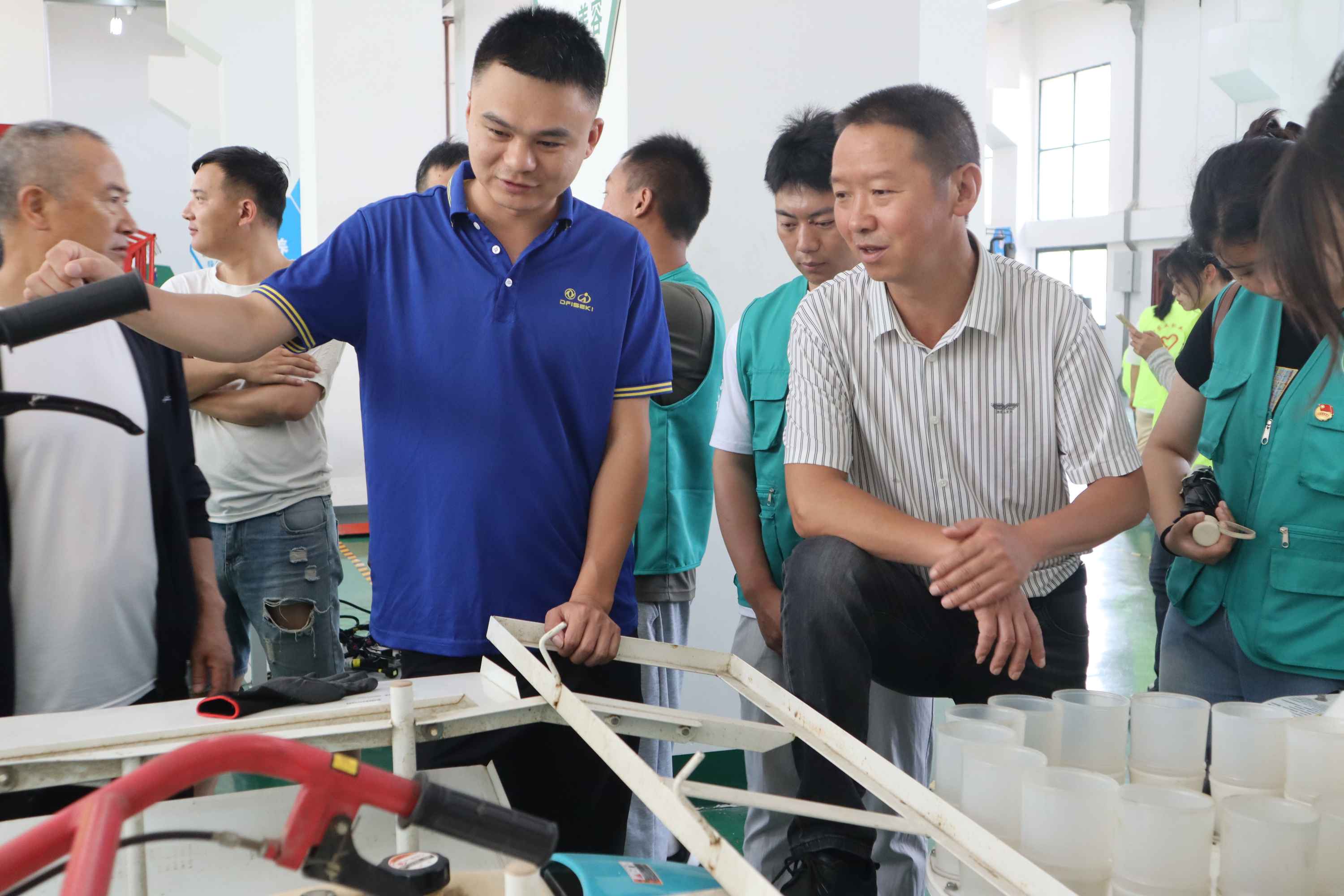 為促進農業科技與社區生活融合,通過機械強農助力鄉村振興,“黔語千尋”暑期社會實踐團于2024年7月16日邀請二十余名清鎮市濱湖街道鄉愁社區居民前往貴州農業職業學院機電與城建系實訓室進行農用機械參觀,以此搭建農職院與鄉愁社區的溝通交流橋梁,共同探索智慧農業發展新路徑。