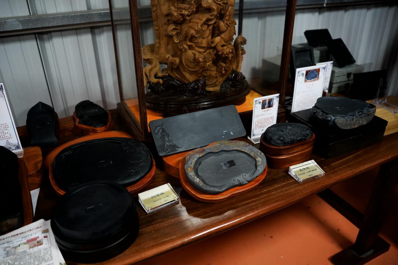 非遺文化展新篇下午,調研團隊前往茫蕩鎮里溪山莊,深入了解當地的鳳咮硯非遺文化。這里曾是宋代以來硯臺制作的重要產地,如今通過當地居民的努力和區域性支持,鳳咮硯的雕刻技藝得以復興。鄭世陽先生作為當地的技能類科技特派員,帶領團隊積極推廣鳳咮硯文化,打造了多件精美作品,其中《寒江獨釣》更是榮獲多項國家級工藝美術獎項。