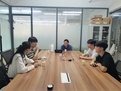 圖為實踐隊員與公司負責人深入交流。中國青年網通訊員 張志吉 供圖
