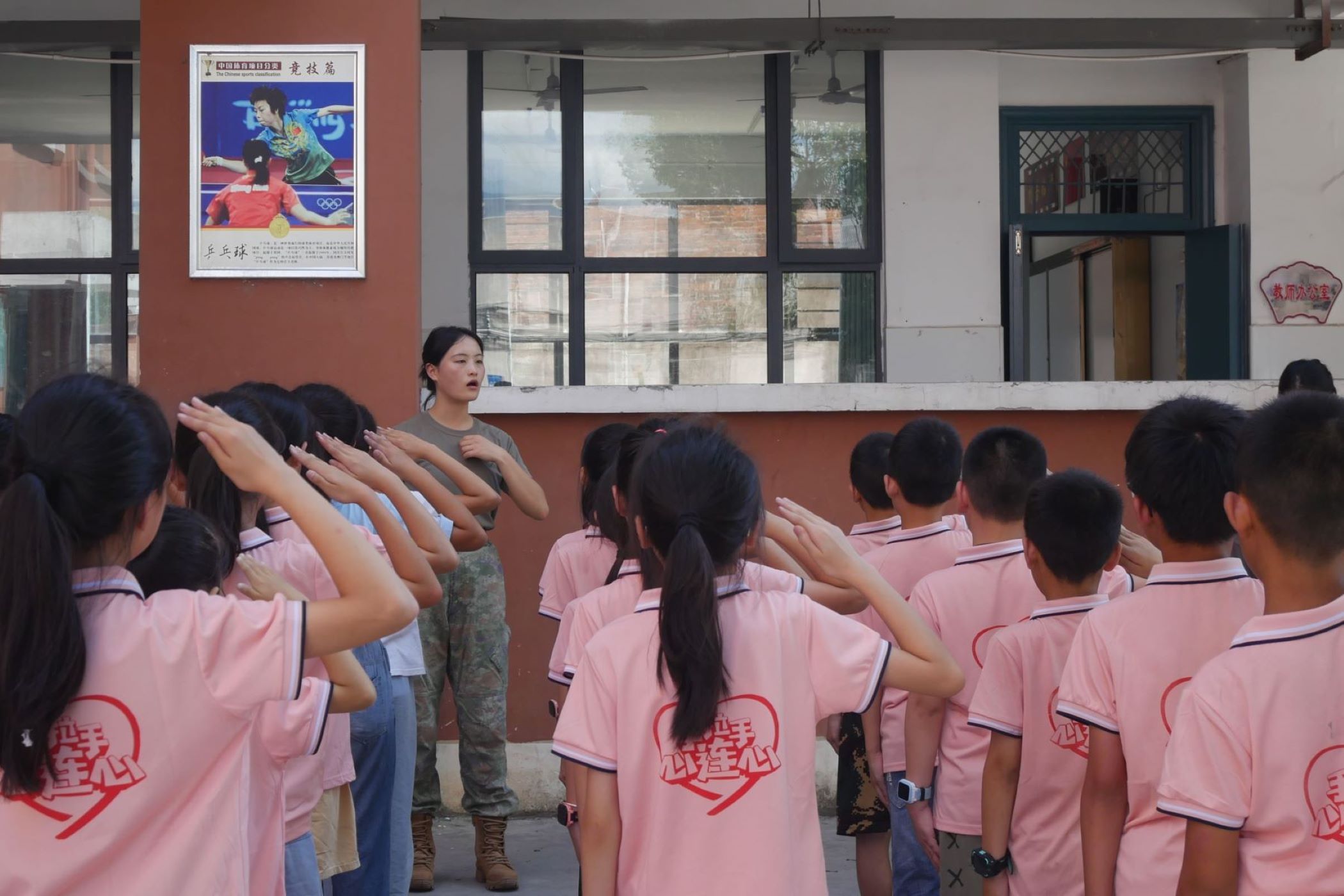 學(xué)生們展示整齊劃一的訓(xùn)練成果