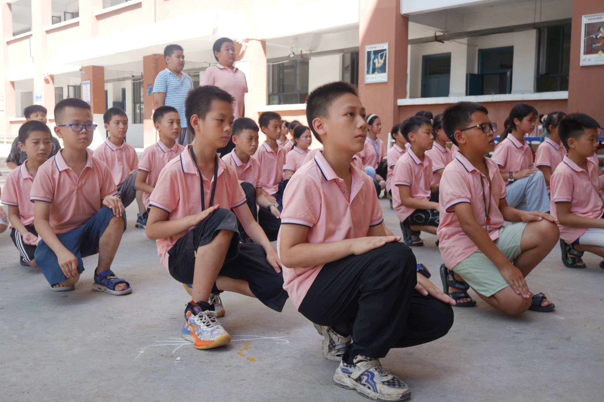 學(xué)生們在進(jìn)行蹲姿訓(xùn)練