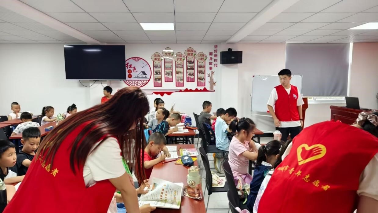 為深刻學習領會習近平總書記關于社會主義精神文明建設的重要論述,大力推進文明實踐、文明培育、文明創建,發揚奉獻、友愛、互助、進步的志愿精神,著力凝聚奮進新征程的強大精神力量。安徽工業大學外國語學院的學生們踴躍響應“三下鄉"社會實踐的號召,滿懷熱情地走入安慶市迎江區和桐城市翻身社區的兒童服務站。自7月10日起,志愿服務隊根據自身工作實際,結合自身所學專業,帶領孩子們閱讀英語單詞、繪畫、做手工等活動;