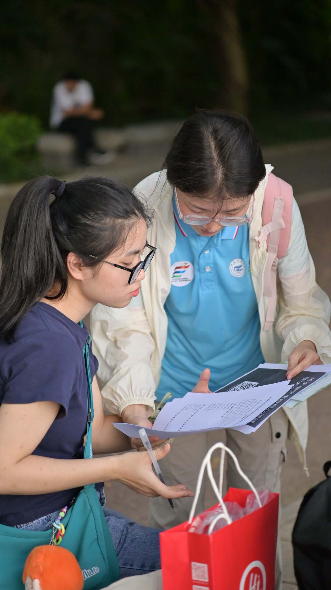 圖為實(shí)踐團(tuán)成員向游客進(jìn)行問卷調(diào)查及環(huán)保知識(shí)科普