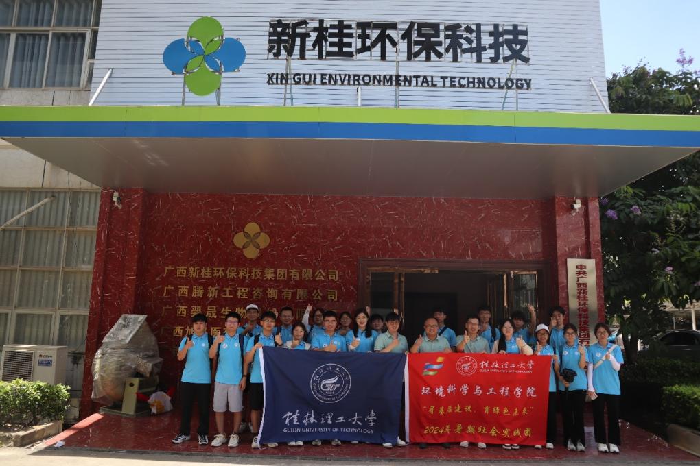 圖為桂潤環(huán)境科技有限公司工作人員與實踐團成員活動合影