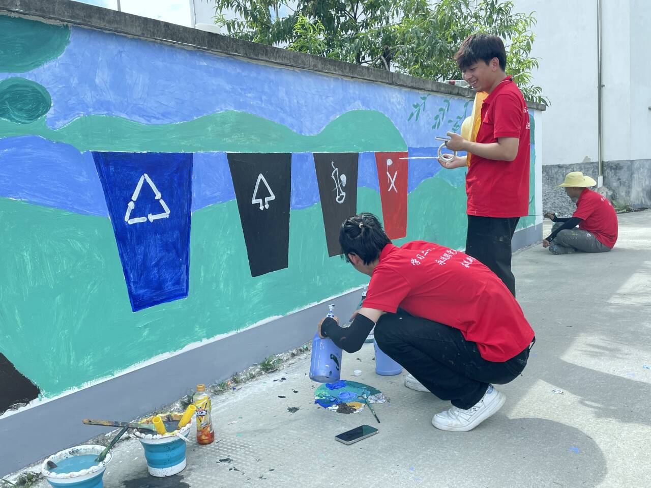 【池州學院7月20日】(通訊員 楊舒文 趙秀麗)為提高農村垃圾分類意識,倡導綠色環保生活方式,近日,池州學院藝術與教育學院“繪美筑夢“實踐團隊走進我省宣城市旌德縣東山村,開展垃圾分類主題墻繪活動,以生動形象的畫面宣傳垃圾分類知識,引導村民積極參與環境保護。此次活動旨在提高村民環保意識,推動垃圾分類工作在農村地區落地生根。
