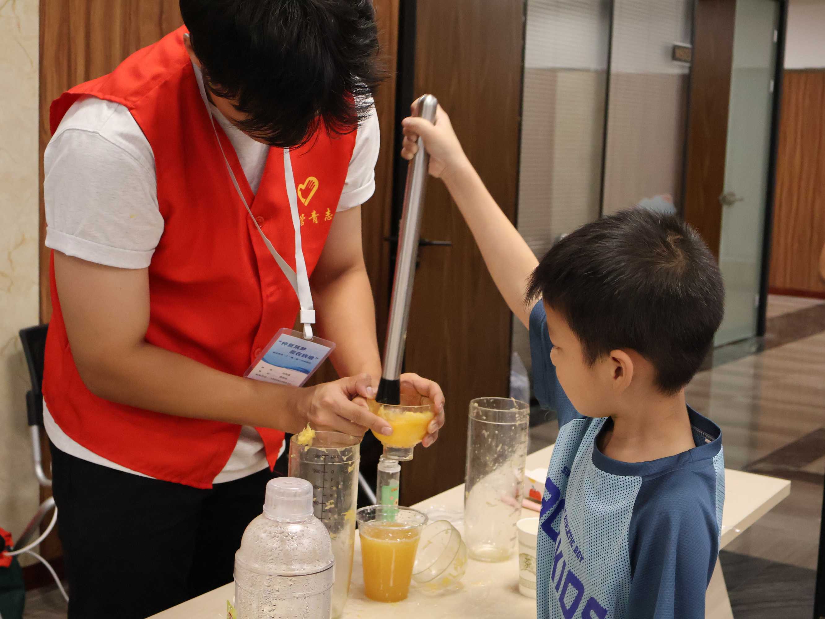 “慧啟青苗,‘工’富‘童’行”實踐隊協助小朋友制作美味水果茶