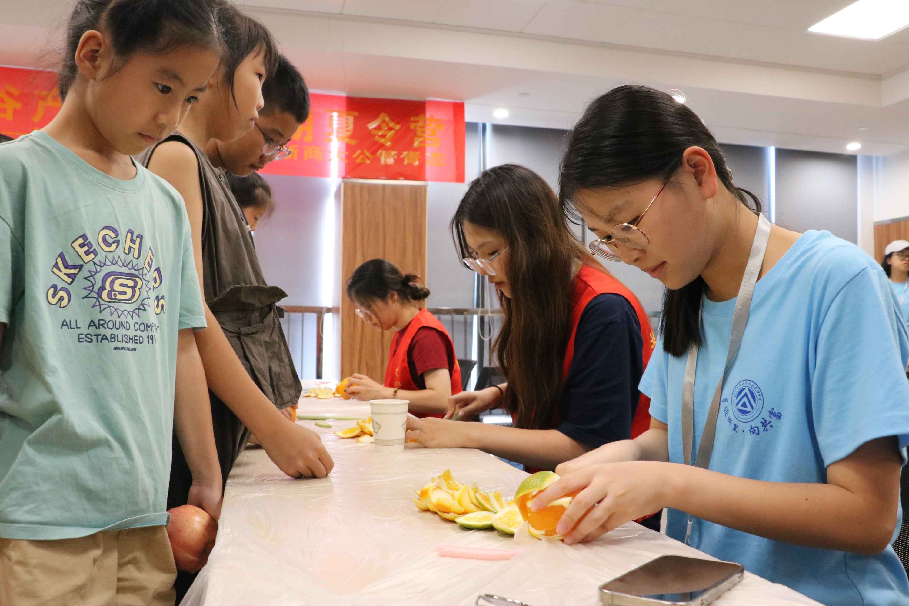 “慧啟青苗,‘工’富‘童’行”實踐隊協助小朋友切水果